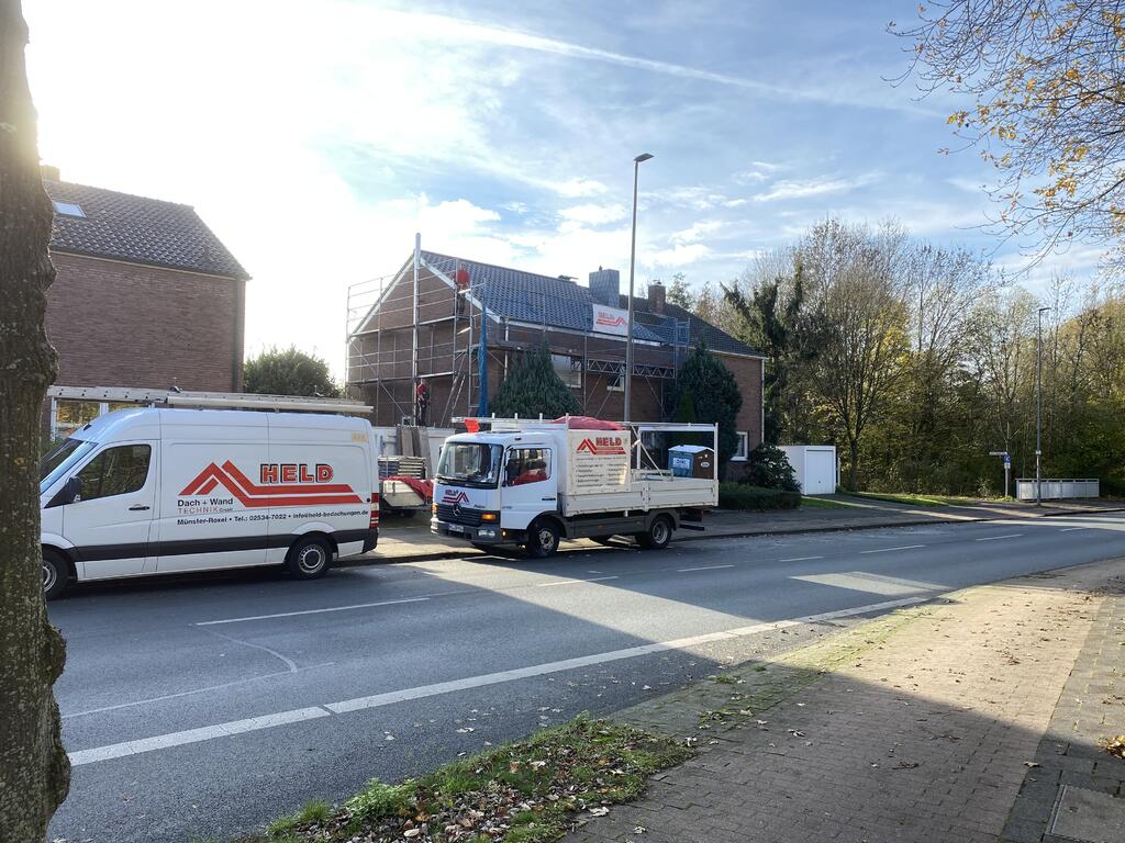 Sie suchen einen zuverlässigen und erfahrenen Dachdecker im Raum Münster? Ob Dacheindeckung, Flachdachsanierung oder Dachreparatur – das Team der HELD Dach + Wand Technik GmbH kümmert sich gerne um sämtliche Arbeiten rund um Ihr Dach. Darüber hinaus sind wir auch im Bereich Fassaden- und Wandbekleidungen sowie Kranverleih Ihr fachkundiger Ansprechpartner. Unser Dachdecker-Fachbetrieb ist für Kunden wie private Haushalte, Verwaltungen, Architekten und Gemeinden in Münster unterwegs.